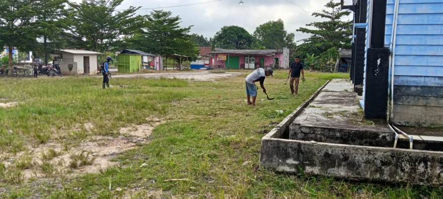 Kegiatan ini dimulai sejak pagi hari dengan menyasar berbagai titik penting, mulai dari halaman Kantor Balai Desa hingga area Gedung Olahraga (GOR). Seluruh perangkat desa terlihat kompak dan antusias dalam membersihkan lingkungan, memotong rumput, serta merapikan area sekitar fasilitas umum.